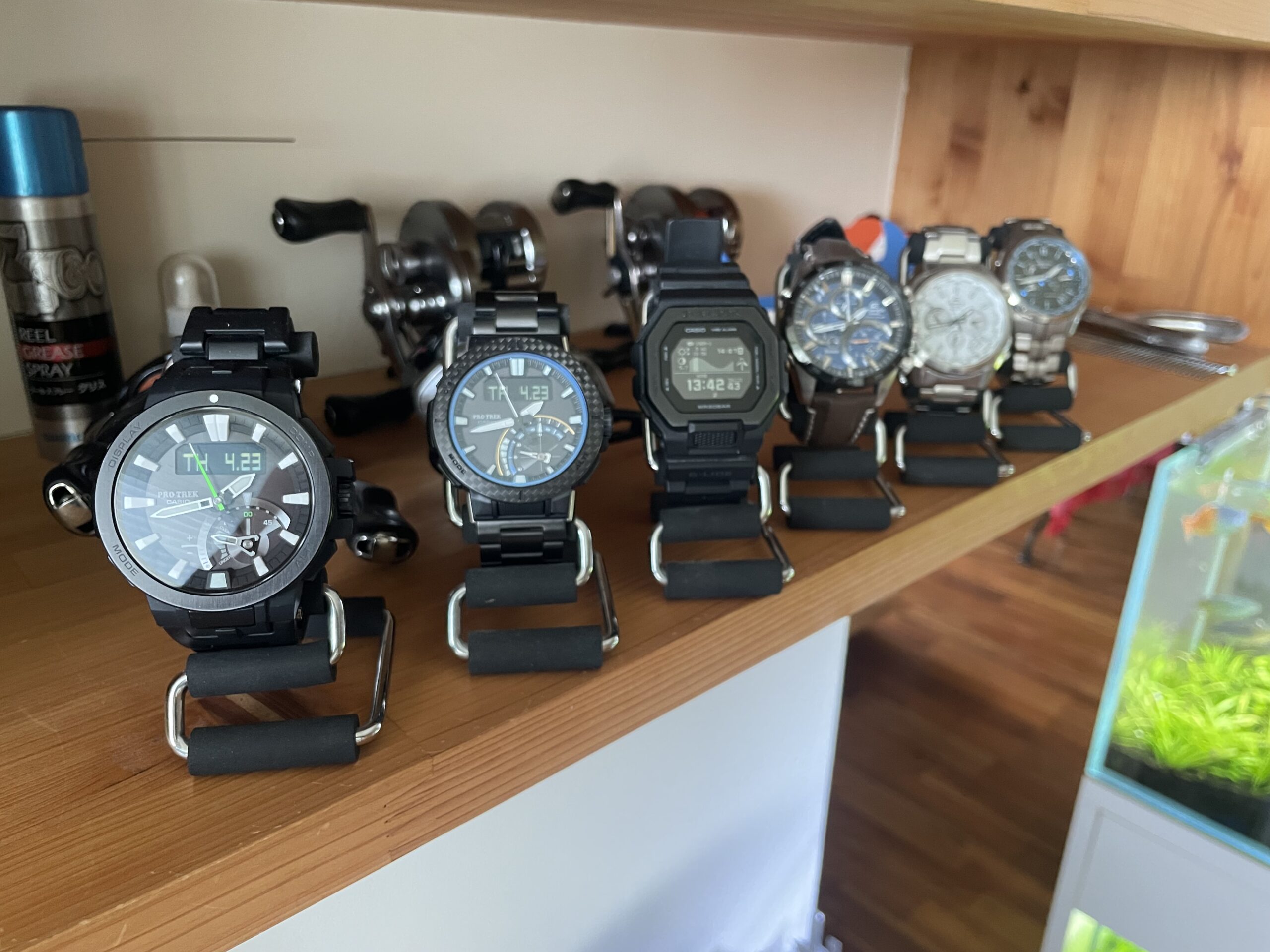 ボクの普段使いのコレクションにはPRO TREKはいつも2本所有していたが、実は今では2本ともアングラーライン。けど、あくまでも大真面目に大好きな釣りのモチベーションアップ用として釣行にはしていかない。だって、釣行時に傷がつくのは嫌だから。普段でもふとタイドグラフを見た瞬間、たまたま上げ3分や下げ7分だったりするとワクワク。次はいつ釣行しようかなぁーって考えるのが癒し。